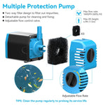 A: The pump has a maximum flow rate of 160 GPH and a lift height of 4.9 feet. It also includes an adjustable flow valve to meet different water flow and height preferences.