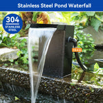 Upgraded Pond Waterfall Kits: The pond waterfall spillway includes stainless steel waterfall box, efficient 580GPH pump, 9.8ft sturdy flexible corrugated tube, tube clamps, sealants, and a pump filter bag. No need to buy additional parts, that you can build a waterfall for outdoor/pond/garden po...