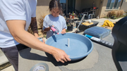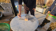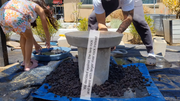 Let the concrete dry naturally and check the drying condition the next day. If the concrete is not fully cured, it may cause problems if it is sanded. For example, in this production, the top layer was sanded to expose the aggregate, but it failed because the concrete was not cured. After 4 days, gently tap the bottom of the bucket to use the concrete's own weight and knocking force to demold it smoothly. If you are not satisfied with the surface texture of the concrete, you can add some cement to the surface to adjust it.