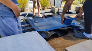 Tools and accessories: solar water pump (12 watts, with dry-run protection, adjustable pumping strength, equipped with foam filter), hot glue gun and glue stick, cutting tool, safety equipment (goggles, etc.), level, black volcanic stone (or other suitable gravel), rubber hose (for pool bottom and net protection), cable ties, scissors, cups, brushes, fast-setting concrete and masonry high-gloss sealant.