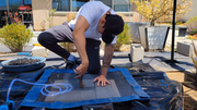To reduce the amount of concrete and reduce the overall weight, you can use three PVC pipes to build an opening structure that allows the fountain hose to pass through. Place the three PVC pipes evenly in the mold, adjust the position, and fix the connection points between each other with a hot glue gun.