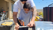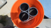 Use a cutting tool to cut 4-inch long sections from the PVC pipe. Be sure to wear eye protection when cutting and tie up long hair to ensure safe operation. If the PVC pipe is hard, one person can support it while the other cuts it.