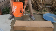 Pour the prepared concrete into the mold (5-gallon bucket). Bubbles may form during the process, but don't worry about overflow. If you use a plant tray, be aware that it uses more concrete.