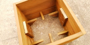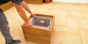 Place the plastic bucket in the appropriate position of the frame, it is like a silently dedicated "reservoir", supplying water to the fountain continuously.