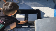 - Test the fit of the cutting board against the top of the mixing drum to ensure it is a tight fit.