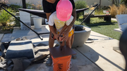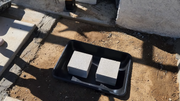 - Put two cinder blocks in the mixing bucket and place them side by side, leaving space for the water pump in the middle.