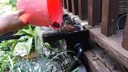 Put the mesh bag over the water pump to prevent leaves and debris from clogging the water pump.