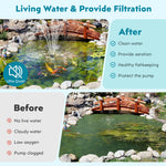 A: The system uses a combination of filter pads, bio-balls, and filter sets to remove debris and reduce algae, keeping pond water crystal clear and safe for fish and plants.